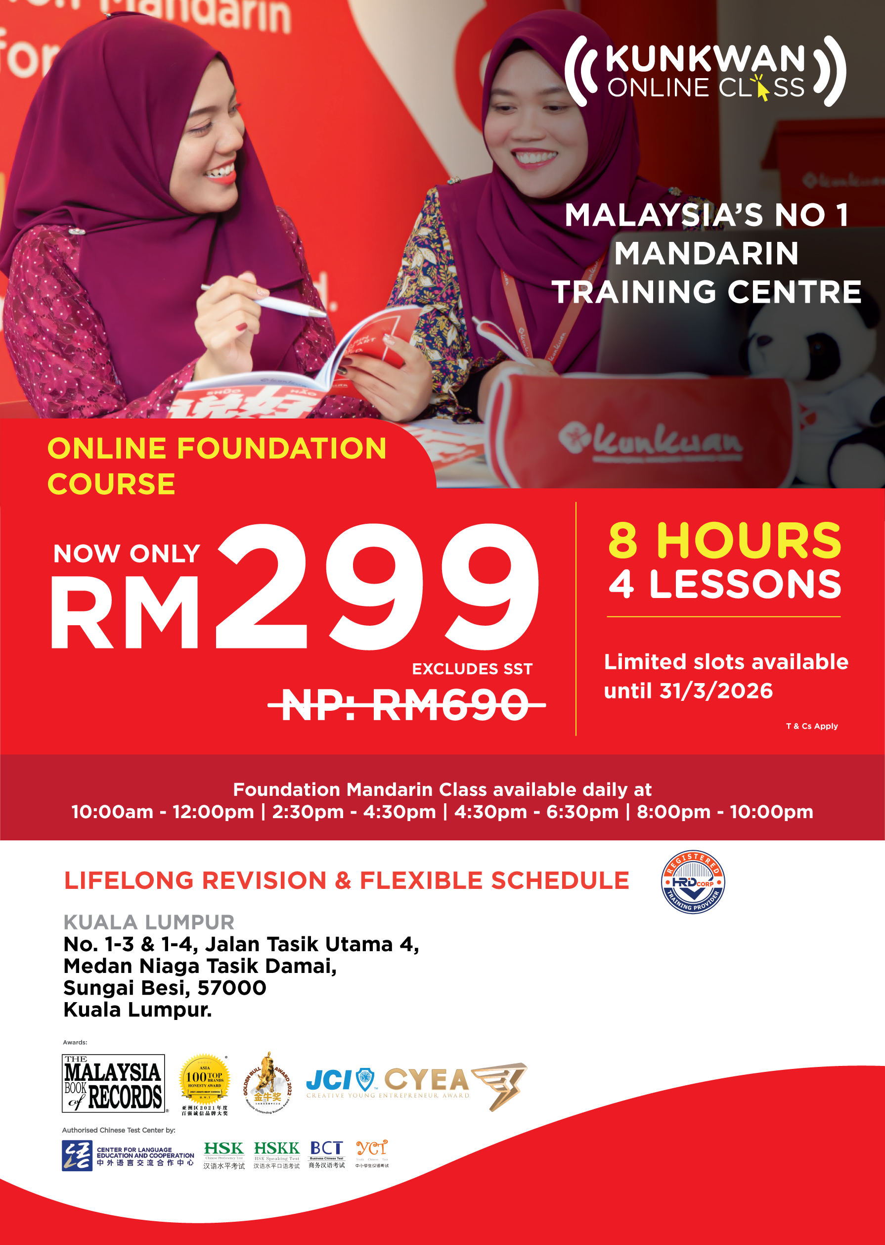 Kelas Asas Bahasa Mandarin hanya RM299 untuk 8 jam. Terhad kepada 20 orang yang terawal sebelum 31st March 2026.